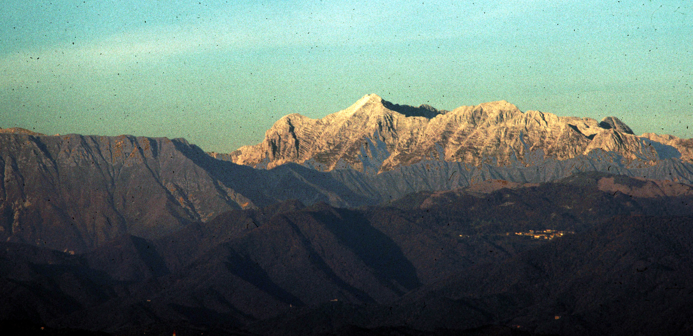 Perspective view of the massif of Mount Canin taken from Udine northwards. The BEAVERTON dropping zone is on the foreground hills, at the right of the picture [26].