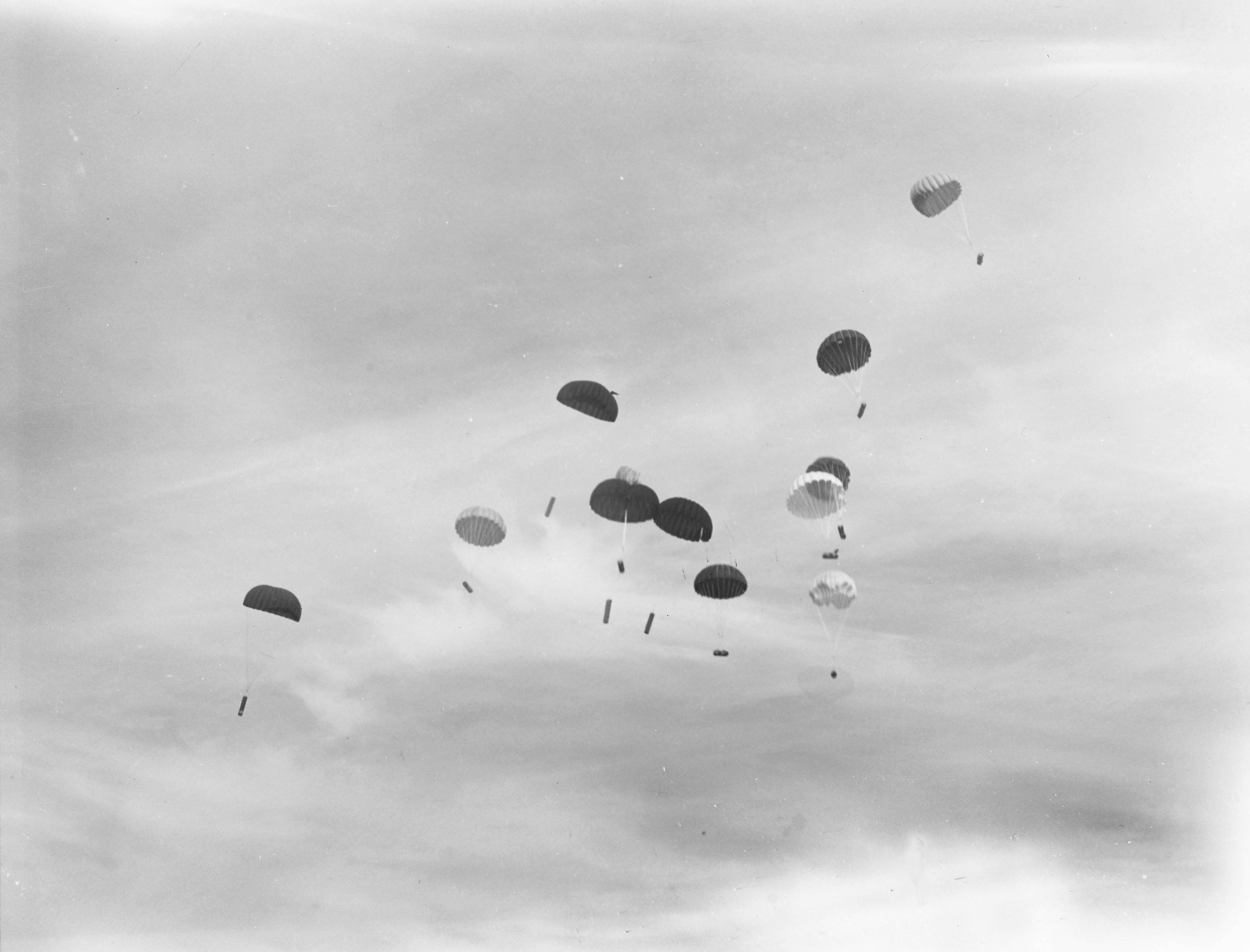 North Italy, 15 February 1945. Some just dropped containers and packages fall after the passage of the B-24 [26].